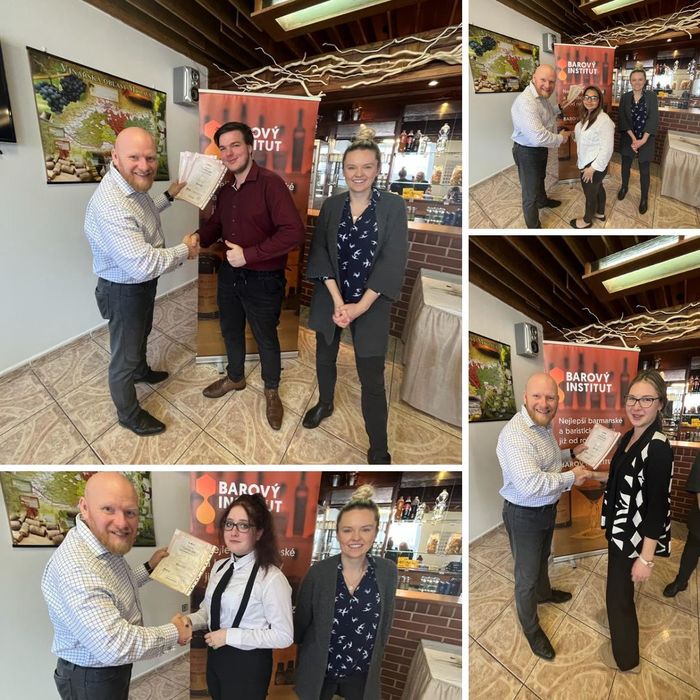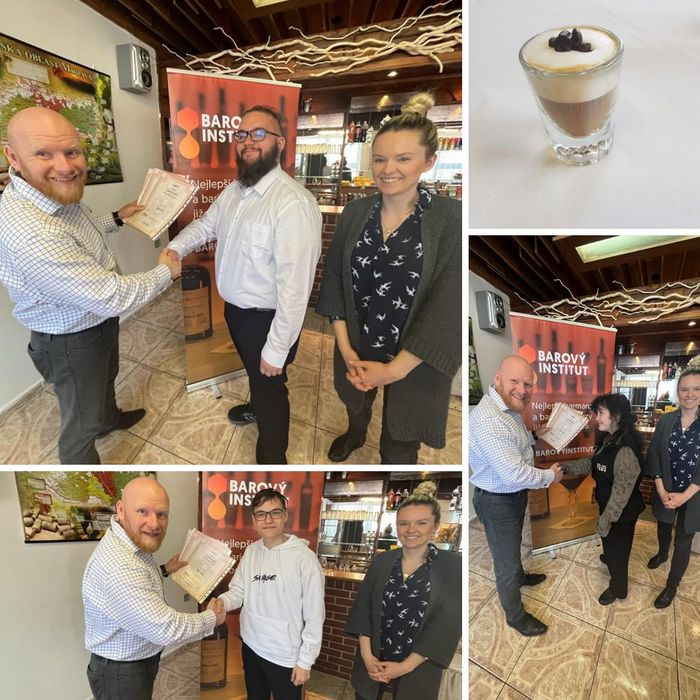 Dne 3. května 2023 na naší škole proběhl baristický kurz pod vedením lektorů z Barového institutu ČR. Jednodenního kurzu se zúčastnilo celkem 10 našich žáků z různých učebních i nástavbových oborů. Žáci měli možnost se v rámci teorie seznámit s přípravou espressa, alternativními metodami přípravy kávy, včetně historie kávy, druhů kávy, aj. V praktické části kurzu se zabývali nastavením mlýnku pro hrubost a gramáž kávy, přípravou špičkového espressa, nácvikem šlehání mléčné pěny pro cappuccino a latte macchiato a ukázkami techniky "latte art". Jsme rádi, že všichni naši žáci úspěšně zvládli celý kurz včetně závěrečného testu a získali tak mezinárodní certifikát na pozici Master Barista. Gratulujeme! Pevně věříme, že zvýšení své kvalifikace naši žáci využijí při hledání uplatnění na pracovním trhu. V příštím školním roce 2023/2024 je naplánován další baristický kurz pro žáky všech ročníků a oborů naší školy, předpokládaný termín konání je listopad. Děkujeme lektorům z Barového institutu ČR za jejich školení a průpravu v oblasti světa kávy.