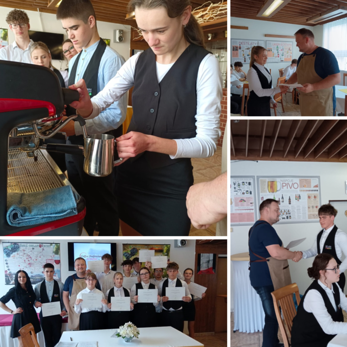 Garantem a lektorem byl Jiří Čad, Ambasador & Master Barista SCA Professional. Kurz probíhal pod vedením UOV Ludmily Soukupové. Zúčastnili se ho žáci gastronomických oborů naší školy, kteří se učili pracovat s profesionálním kávovarem, správně pěnit mléko i vytvářet základní latte art. Na závěr si odnesli certifikáty a spoustu nových dovedností.