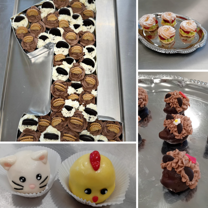 Sladká ukázka šikovnosti našich žáků oboru Cukrářské práce pod vedením učitelek OV Vaníčkové a Poupětové. Od dortů přes minidezerty až po veselé figurky – kreativita a zručnost nechybí!