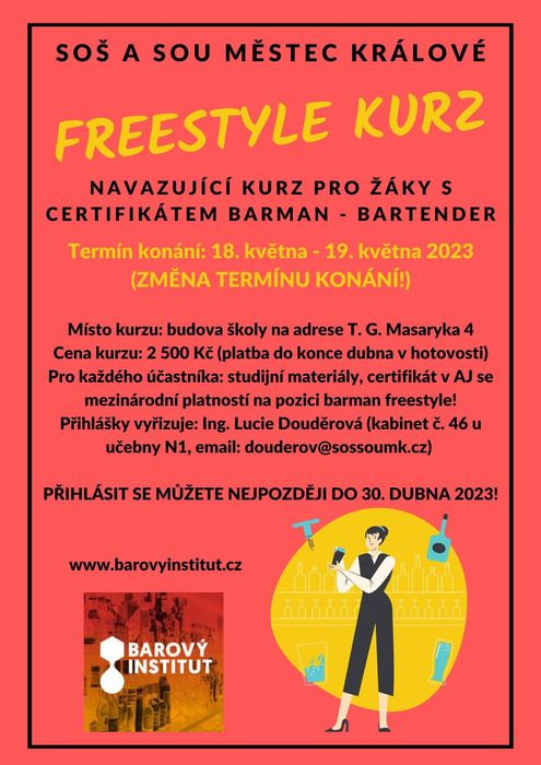 Freestyle kurz - navazující barmanský kurz pro žáky s certifikátem barman-bartender na SOŠ a SOU Městec Králové.