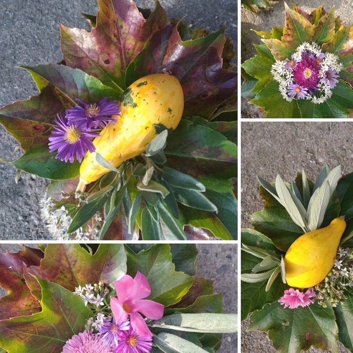Naši zahradníci a zahradnice připravují květinovou výzdobu na stoly na Polní den Sloveč.