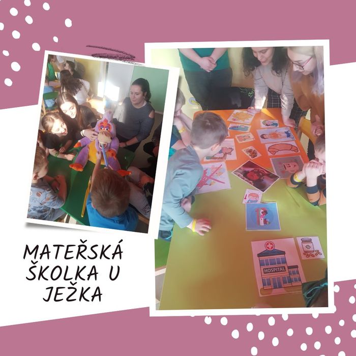Třída 1.E se dne 2. března 2023 pod vedením paní učitelky Ing. Douděrové opět vypravila na projektový den "Ježek stůně" do Mateřské školky U Ježka. Mezi dětmi provedli popis periodických vyšetření u lékaře, zubních prohlídek a pobavili se o domácí léčbě.