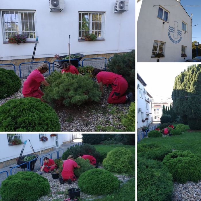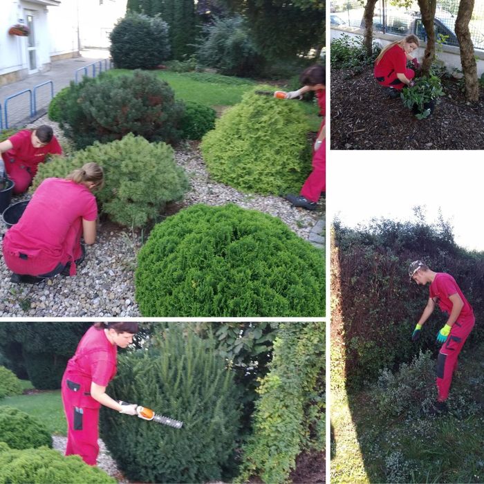Úvod > Aktuality > Naši zahradníci a zahradnice při práci - úprava zeleně VAK Nymburk