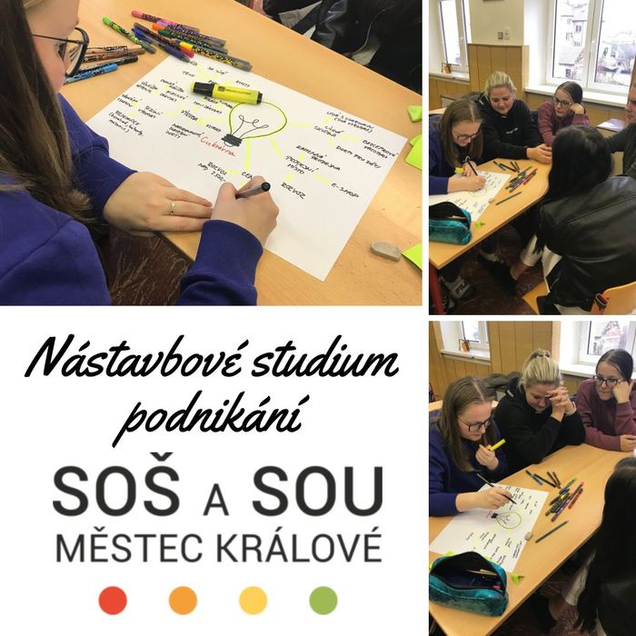 V rámci předmětu Chod podniku studenti nástavbového studia třídy 1. D obor podnikání zpracovávají myšlenkové mapy svých podnikatelských záměrů fiktivních firem. Myšlenkové mapy představují nástroj učení spočívající v uspořádání klíčových slov vytvořených metodou brainstormingu v grafické podobě, doplněný obrázky vyznačující vzájemné vztahy a souvislosti. Přínosem této aktivizační metody výuky je rozvoj logického myšlení, zapojení všech členů skupin, zlepšování komunikačních dovedností a tvorba kreativních způsobů řešení problémů.