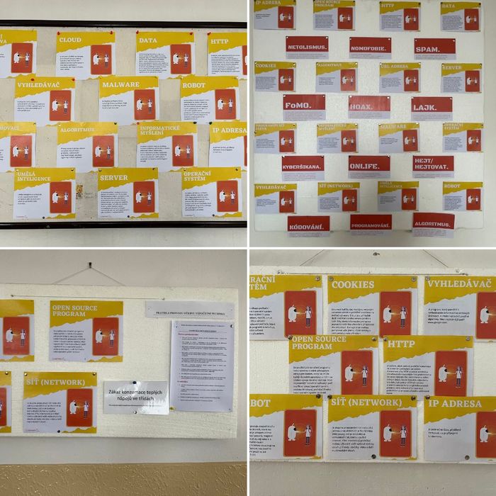Žáci třídy 2.D a 3.B se dnes vrhli na nové nástěnky v PC učebnách. Co na ně říkáte? Přečíst si na nich můžete o základních pojmech související s předmětem Informační a komunikační technologie, nebo se obohatit o 10 zábavných faktů souvisejících s historií ale i současností rozvoje IT technologií.