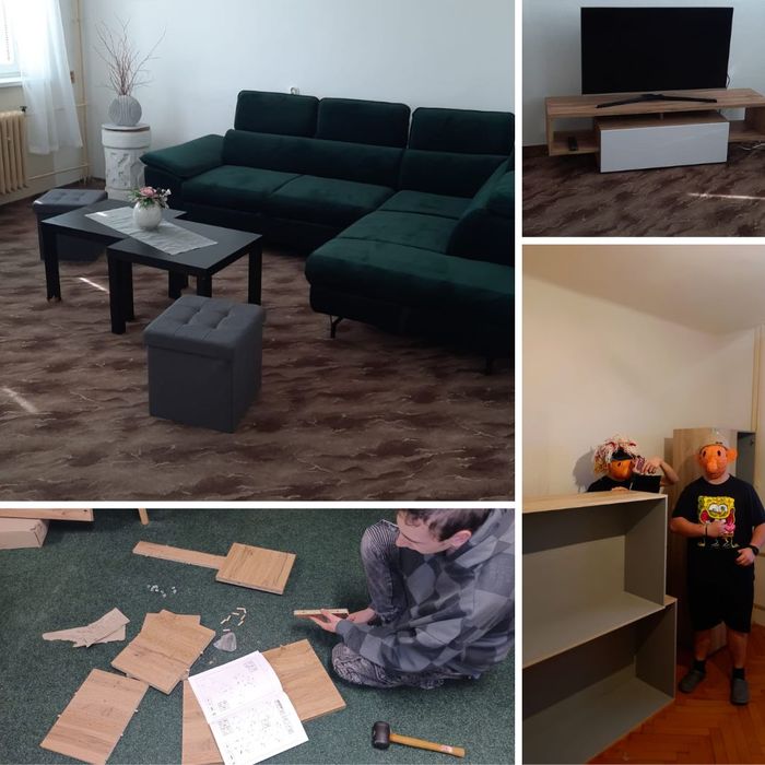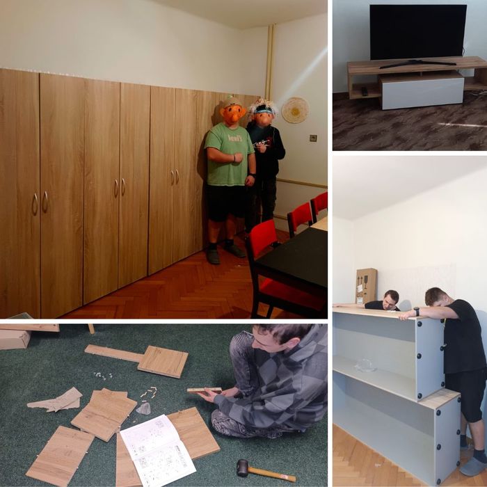 Naši šikovní žáci P. Soukup a J. Kracek sestavují nový nábytek do společenské místnosti a výtvarné dílny na domově mládeže. Chlapcům děkujeme za pomocnou ruku.