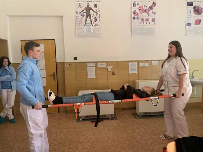 Odborný výcvik oboru ošetřovatel je v plném proudu. Žákyně nacvičují základní činnosti u lůžka, dopomoc částečně imobilnímu pacientovi při pohybu, první pomoc u poranění, péče o kojence, měření fyziologických funkcí, podávání stravy a nácvik sebeobsluhy. Výkony jsou prováděny v ošetřovatelské učebně s učitelkou odborného výcviku Alenou Vaňkovou.