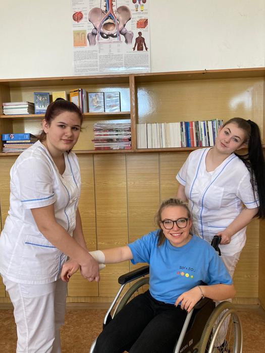 Odborný výcvik oboru ošetřovatel je v plném proudu. Žákyně nacvičují základní činnosti u lůžka, dopomoc částečně imobilnímu pacientovi při pohybu, první pomoc u poranění, péče o kojence. Poranění jsou simulační, děvčata sama poranění kreativně připravila s učitelkou odborného výcviku Alenou Vaňkovou.