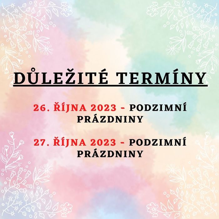 Úvod > Aktuality > Podzimní prázdniny ve školním roce 2023/2024