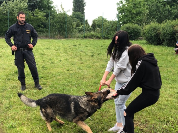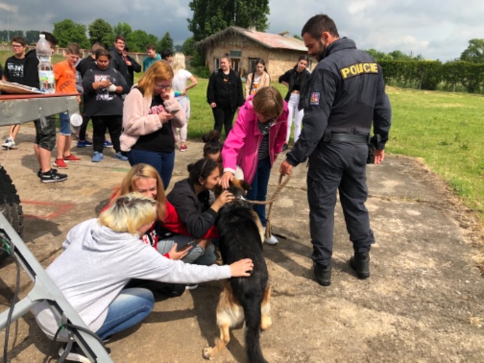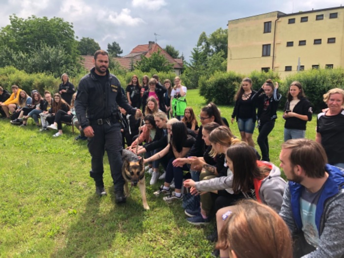 Dne 6. června 2022 proběhla v rámci prevence kriminality ukázka výcviku služebních psů Policie České republiky. Žáci naší školy se sešli za hřištěm školního internátu, aby si z úst policejního psovoda nejprve vyslechli zajímavosti o výcviku služebních psů a dále si mohli jednotlivé modelové situace (např. hledání předmětů, zadržení prchajícího pachatele, obrana psovoda) sami vyzkoušet. Dokonale vycvičení psi pobavili nejen svou hravostí, ale vysloužili si též potlesk za svou poslušnost a oddanost.