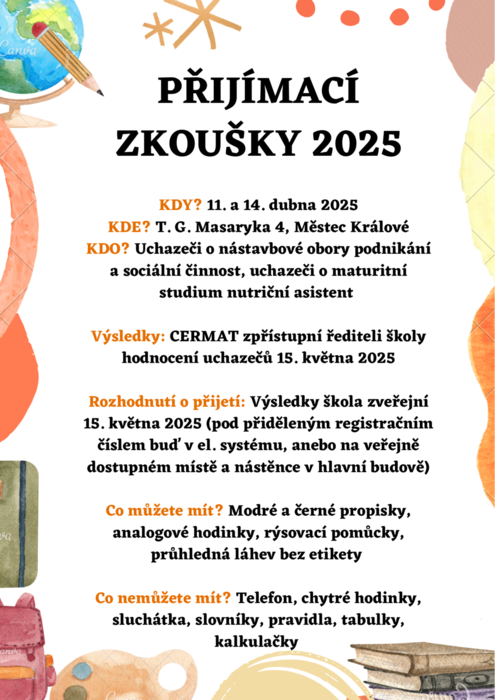 Úvod > Aktuality > Přijímací zkoušky pro nástavbové obory a maturitní obor 2025