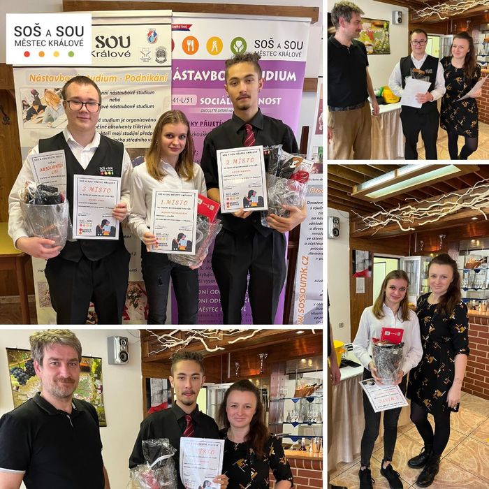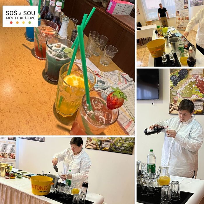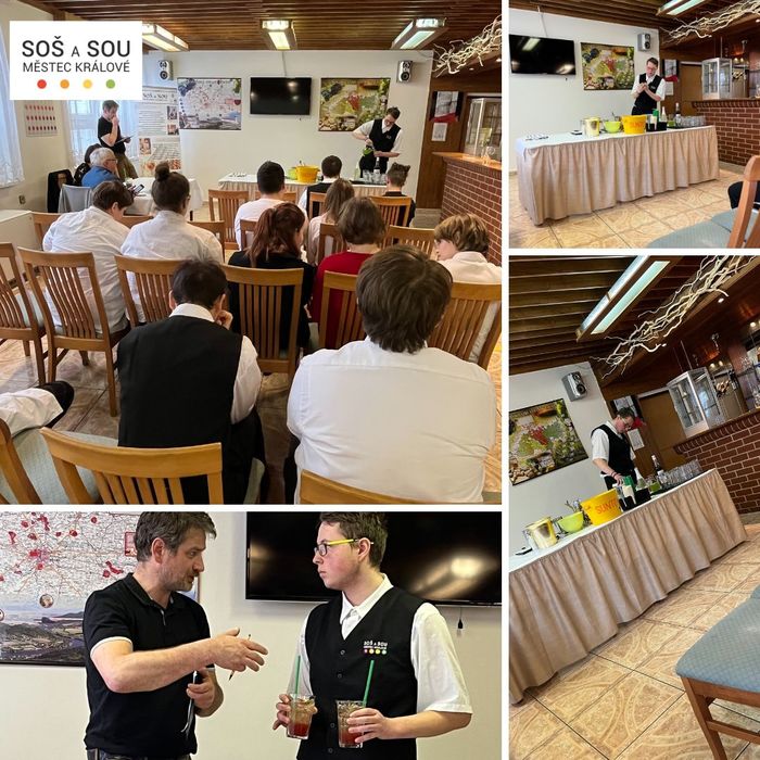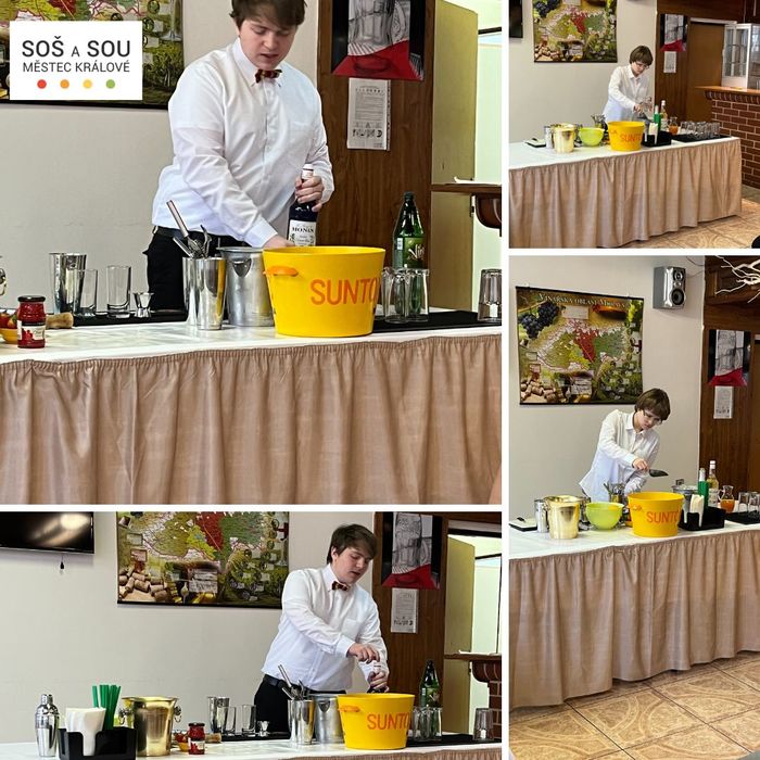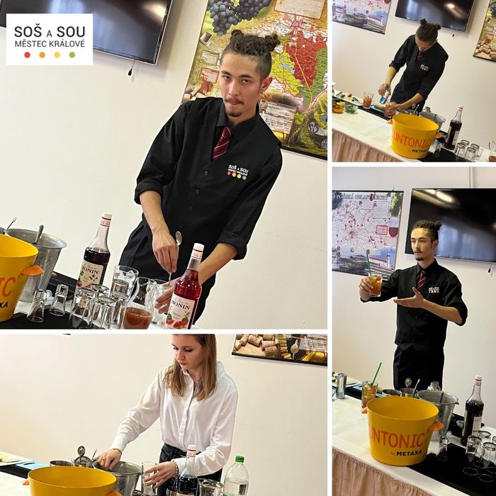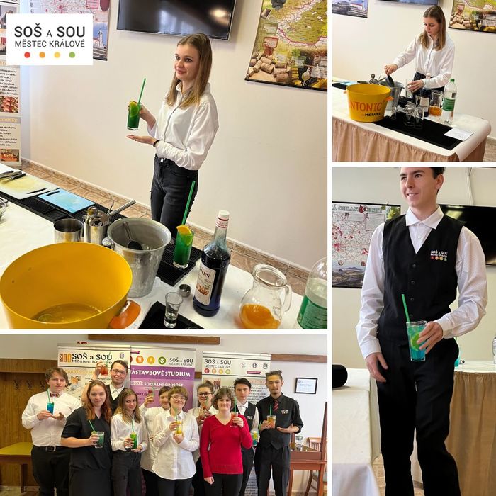 Dne 16. února 2023 se v prostorách hlavní budovy školy uskutečnila školní barmanská soutěž mezi účastníky barmanského kurzu vedeného Mgr. Janouškem z Barového institutu. Zadáním školní barmanské soutěže byla tvorba vlastního nealkoholického drinku. Porota ve složení Bc. Luboš Šebek, Ing. Lucie Douděrová a Jan Kopecký rozhodovala dle několika klíčových faktorů a vybrala následující trojici vítězů. Gratulace k 1. místu patří slečně Jazmin Povidajcsik ze třídy 1.C. Zasloužené 2. místo obsadil David Mendik ze třídy 1.A. Poslední a úctyhodné 3. místo ve školní barmanské soutěži získal Pavel Vrba také ze třídy 1.A. Děkujeme všem za účast a doufáme, že se zase brzy uvidíme při jiném kurzu nebo na třeba na další soutěži!