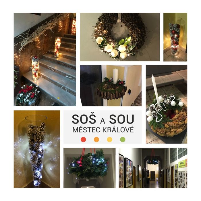 Šikovné žákyně a žáci oboru zahradník pod vedením učitelky odborného výcviku vytvořili krásnou vánoční výzdobu školy. Děkujeme za předvánoční atmosféru, kterou nám svými výtvory do prostředí školy přinesli.