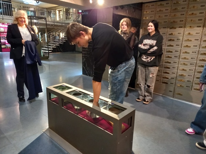 Dne 12. března 2025 se třída 1. D zúčastnila exkurze do České národní banky v Praze. Předmětem byla expozice „Lidé a peníze“, kde jsme se dozvěděli vše o české a československé měnové historii, jak peníze vznikly, jak se vyvíjely a jak s nimi ruku v ruce vznikal finanční systém. Měli jsme možnost vstoupit do historického trezoru banky, potěžkat si 12,5 kilovou cihlu zlata a prohlédnout si druhou největší zlatou minci na světě.