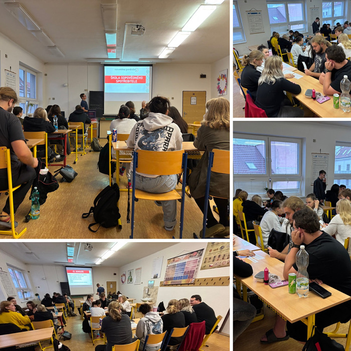 Workshop Škola odpovědného spotřebitele proběhl na naší škole pro žáky nástavbového studia. Studenti získali užitečné informace o spotřebitelských právech, reklamacích či nákupech mimo kamenné prodejny a vše si procvičili na praktických příkladech. Akce byla realizována ve spolupráci s organizací AISIS, z. ú. a Ministerstvem průmyslu a obchodu ČR. Děkujeme za cenné zkušenosti!