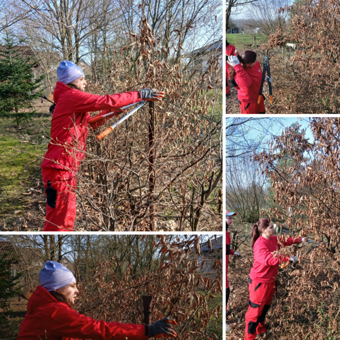 Naši žáci oboru Zahradník při jarní údržbě soukromých zahrad. Stříhání, úpravy i péče o zeleň – práce, která má smysl.